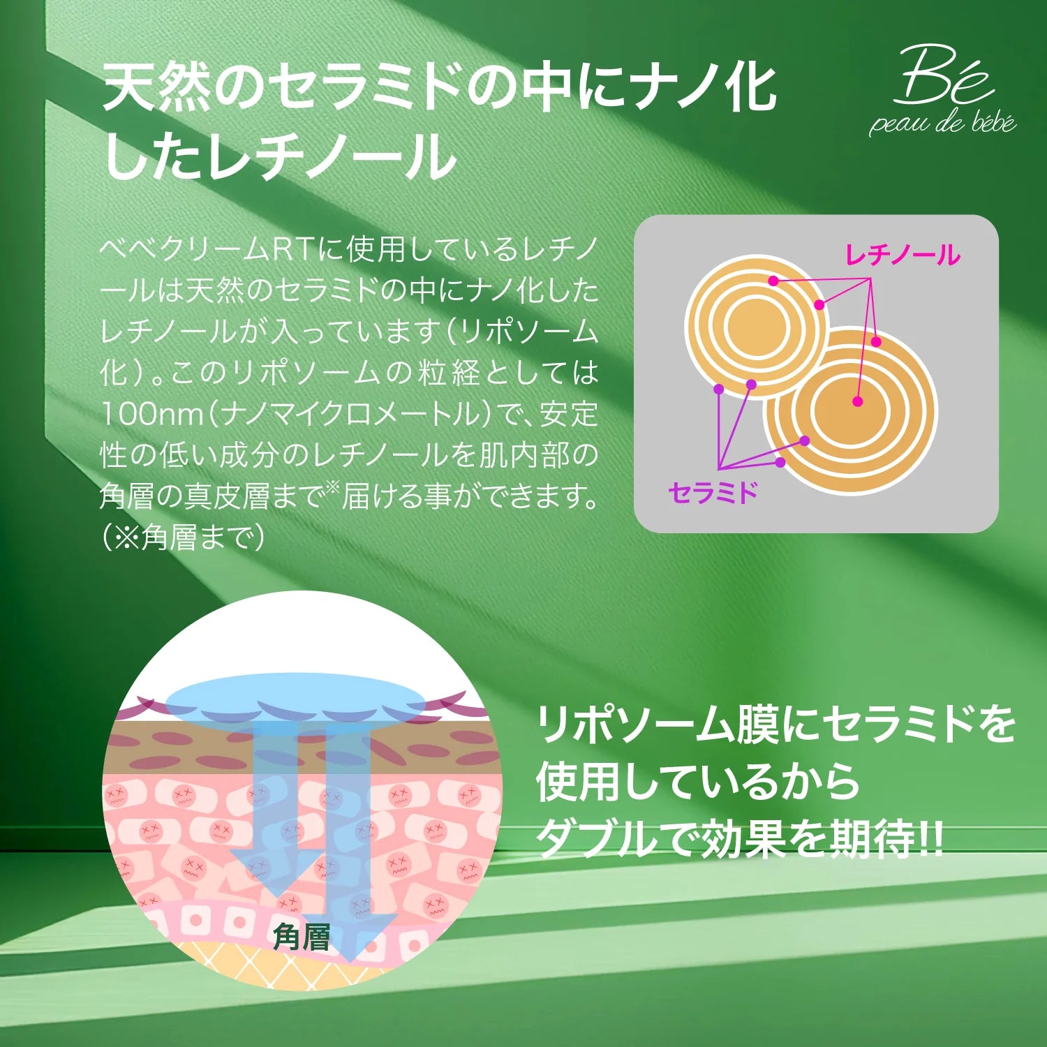 べべクリーム RT に使用しているレチノールは天然のセラミドの中にナノ化したレチノー ルが入っています(リポソーム化)。